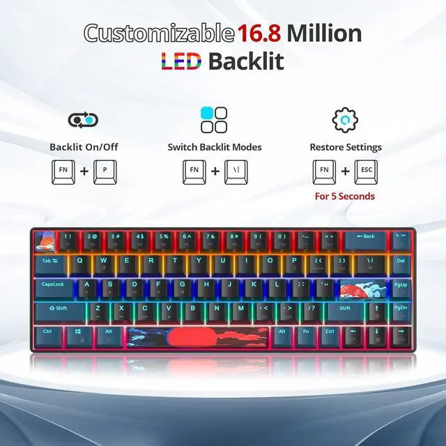 Customizable BacklightingPersonalize your keyboard with dynamic backlighting effects, choosing from a variety of vibrant colors and lighting modes to suit your mood and enhance your gaming setup