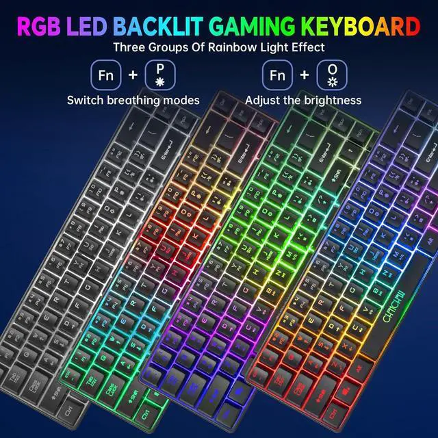 Durable Ergonomic Keyboard and MouseThe keys have a 10 000 000 keystrokes lifetime so that you can hold on to them for the next decade! ABS keycaps adopt a two-color injection molding process, and the letter of characters never fades. Thick, frosted metal cover, long service life, and never deforms. Remember to press FN+W to convert to the arrow keys on the leftWASD). The mouse fits the palm perfectly, and the anti-sweat and non-slip design gives you complete control.