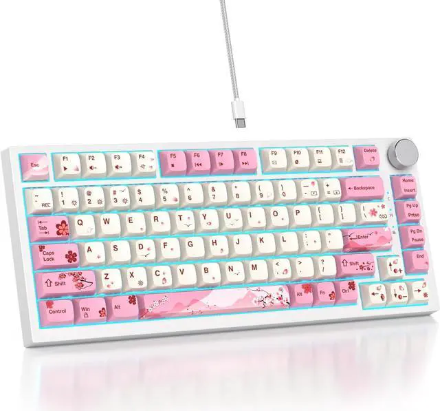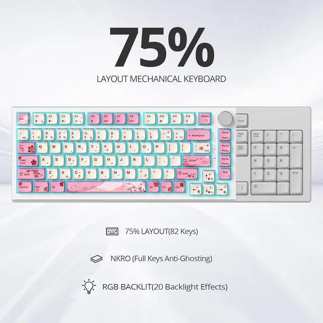 75% Percent Keyboard82 keycaps in a compact layout, this compact keyboard function keys and arrow keys at the same time, the multifunctional knob in the right corner of this keyboard media (volume, play/pause) are all in control with no hassle.