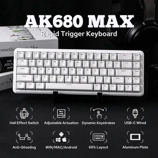 Exceptional 68% Compact Keyboard Comes with 68-key design, the AK680 MAX keyboard ensures that all essential keys are included while minimizing the keyboard' s size, making it more portable and ergonomic. Create your typing experience effortlessly with the AK680 MAXs hot-swappable PCB plate, which allows for easy switch replacements without soldering.