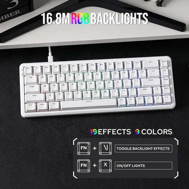 Vivid RGB Lighting for a Personalized Setup The AJAZZ AK680 MAX custom keyboard features stunning south-facing RGB lighting to elevate your desk aesthetics. With fully customizable lighting effects and durable double-shot keycaps with side-printed or top-printed legends, this keyboard balances visual appeal and practicality to suit your style and preferences.