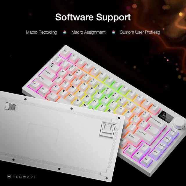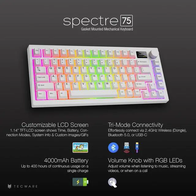 CUSTOMIZABLE LCD SCREEN: Personalize your gaming setup with the Spectre 75% mechanical keyboard with screen display; featuring a 1.14 " TFT-LCD smart screen, easily upload your own GIFs for a dynamic display that sets your keyboard apart
