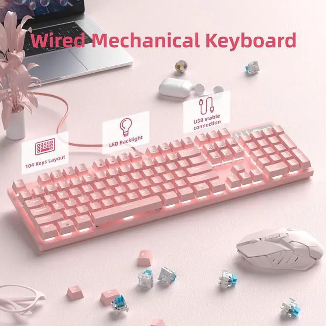 Professional Blue Switches: gaming keyboard is equipped with Blue switches, which are linear, top-to-bottom switches. These switches require less force to press down and the keys feel smoother and easier to use. No tactile " bump" but responsive. A great choice for work and play!