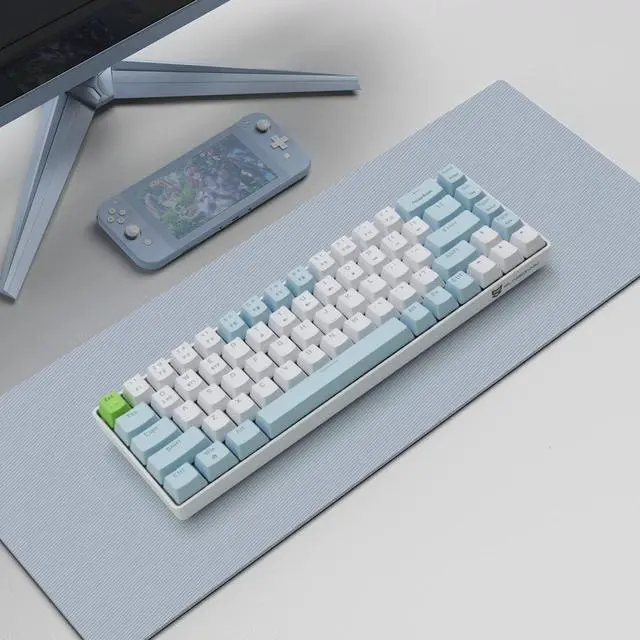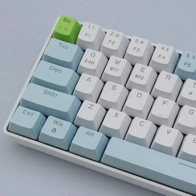 (%): 68 keys mini design, US layout wireless mechanical keyboard red switch (Cherry MX equivalent) will offer fast typing and quick response, more smooth on each keypress. To ensure stability, the plastic base of the 60 percent gaming keyboard is fitted with four rubber pads, providing a perfect position for your typing & gaming.