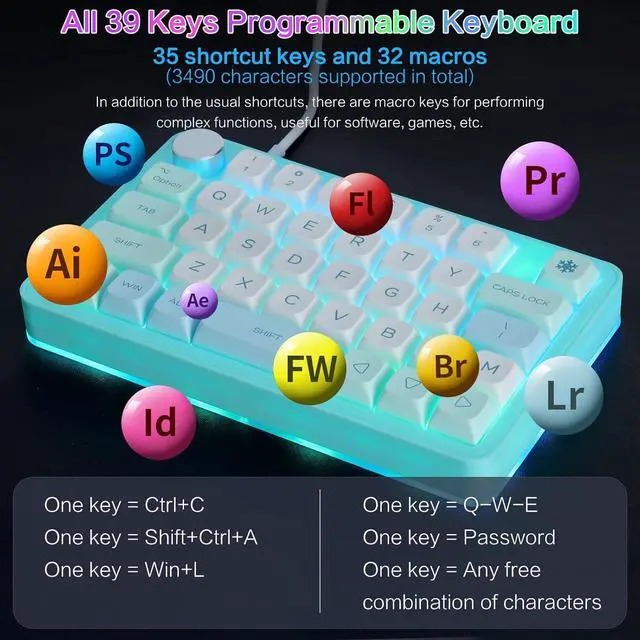 Macro Keys: There are 32 macro function buttons. Macro functions can be used in series, and delayed commands can be added to meet various complex usage scenarios, such