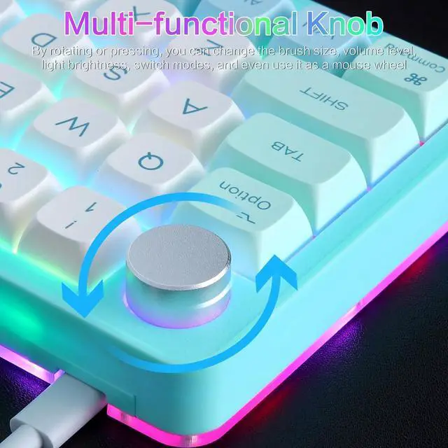 Unique Knob: The knob (turn left and right, press down) can be programmed. Left and right rotation can be infinitely rotated, can be set to ± volume, switch the previous/next song of music, reduce/increase light brightness, switch light mode, turn forward/backward pages, etc