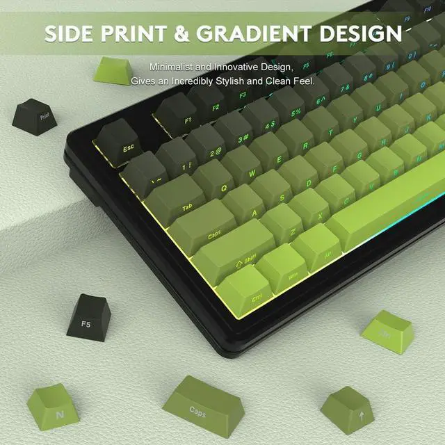 Professional Gaming Keyboard with Side Printed PBT KeycapsDesigned with the most popular gradient colored keycaps, double shot injection side printed letters, and comfortable cherry profile PBT keycaps, adopt compact 87 key layout, retain the separate arrow key, support NKRO and FN key combination function and WIN key lock to prevent accidental touches in intense games, this thocky heavy mechanical keyboard gather a stylish outlook and practicality