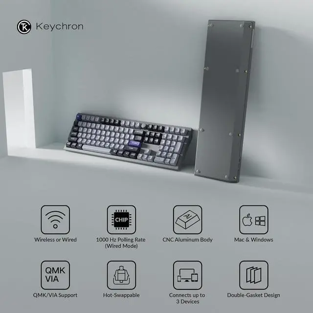 Wireless and Wired Keychron Q6 Pro: You can connect the Q6 Pro with up to 3 devices wirelessly via its stable Broadcom Bluetooth 5.1 for seamless multitasking across your laptop, phone, and tablet. Switch among them swiftly, and its fully compatible with both Mac and Windows. A reliable USB Type-C wired connection is also available when you need it.