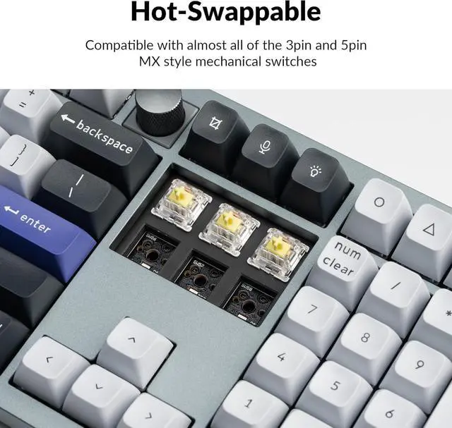 Hot-Swappable: You can hot-swap every switch on the Q6 Pro with almost all of the 3pin and 5pin MX style mechanical switches on the market (including Cherry, Gateron, Kailh, Panda, etc. ) without soldering required. With the pre-lubed K Pro mechanical tactile banana switch provides unrivaled tactile responsiveness with up to 50 million keystroke lifespan.