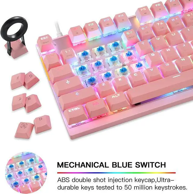 MECHANICAL GAMING KEYBOARD: 87 Keys Compact portable Mechanical Gaming Keyboard with Custom Mechanical Feeling Keyboard Switches (Outemu blue switches). Designed for longevity with greater durability and responsiveness. The switches are of the highest quality, tested for 50 million keystrokes