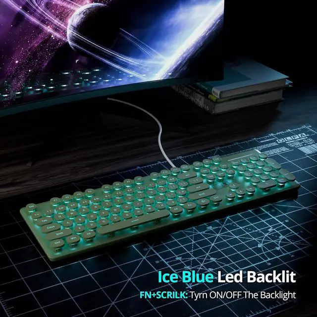 Multimedia & 19 Key Anti-Ghosting: With 12 multimedia keys (Fn + F1~F12) and 19 anti-ghosting keys, this retro keyboard supports simultaneous key presses for gaming or typing
