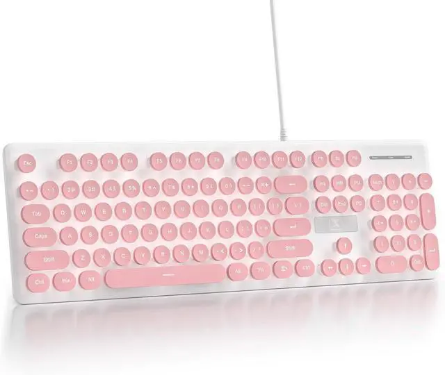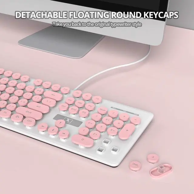 Plug & Play USB Wired Keyboard: No need for driverssimply plug the wired pink retro keyboard into any USB port for instant and stable connectivity, making it ideal for long work sessions