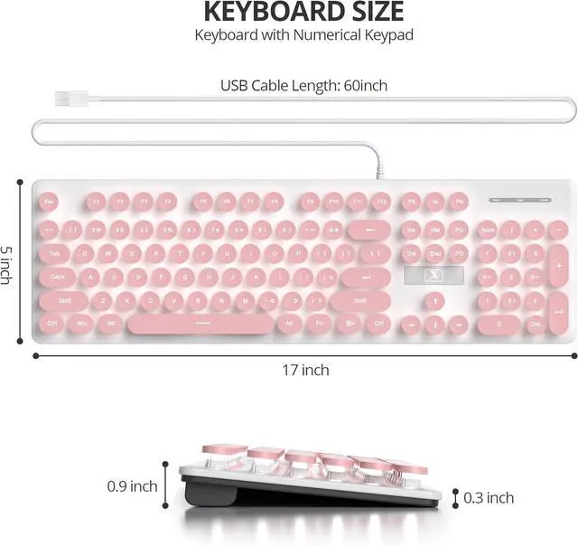 Retro Typewriter Design: This wired retro keyboard with punk round keycaps brings a typewriter feel; full-size layout with a number pad for efficient data entry; The floating-key design ensures comfortable typing; ideal for office, home, and school use