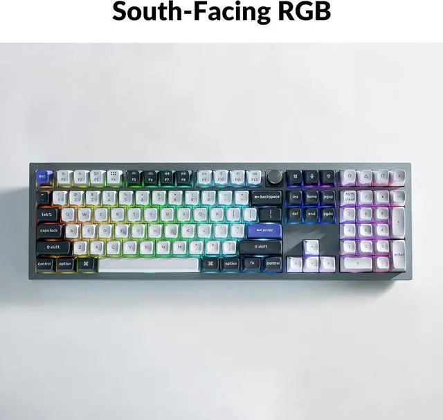 KSA Double-Shot PBT Keycaps: Designed the unique Keychron spherical-angle (KSA profile) double-shot keycap set with premium non-backlight shine through PBT material, that is oil-resistant and durable for long-term use. Comes with 22 types of RGB backlight settings. You can further fine-tune the RGB hue, saturation, brightness, effect speed, and different modes, or even remap these keys with QMK/VIA.
