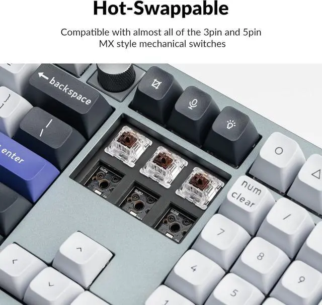 Hot-Swappable: You can hot-swap every switch on the Q6 Pro with almost all of the 3pin and 5pin MX style mechanical switches on the market (including Cherry, Gateron, Kailh, Panda, etc. ) without soldering required. With the pre-lubed K Pro mechanical tactile brown switch provides unrivaled tactile responsiveness with up to 50 million keystroke lifespan.