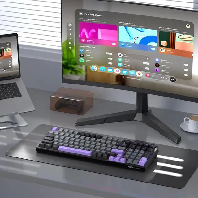 [4000mAh LARGE BATTERY and PBT KEYCAPS]: The 96% layout mechanical keyboard saves more desktop space while retaining function keys and arrow keys for games and work. all 99 keys 100% anti-ghosting, durable PBT keycaps, also equipped with a 4000mAh large-capacity battery, support win/mac dual system.