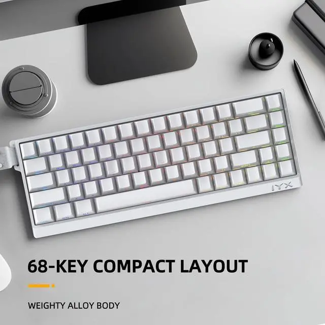 Keys Streamlined Layout: IROK MU68PRO gaming keyboard redefines space efficiency with its 65% tkl compact layout, 68 keys. This design integrates all the essential keys in a smaller footprint, making it perfect for streamlined desks and save more desktop.