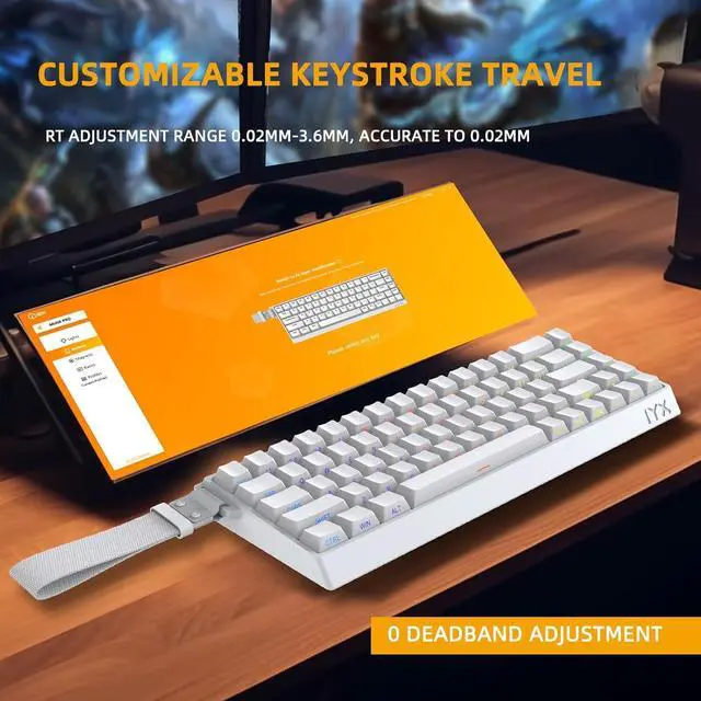 Customizable Keystrokes TravelMU68PRO magnetic keyboard each key can be 0.02 mm accurate, with customizable keystrokes travle from 0.02 mm to 3.6 mm, matching the keystroke needs of different games. This magnetic switch has a trigger force of 35±5GF and a service life of approximately 100 million times.