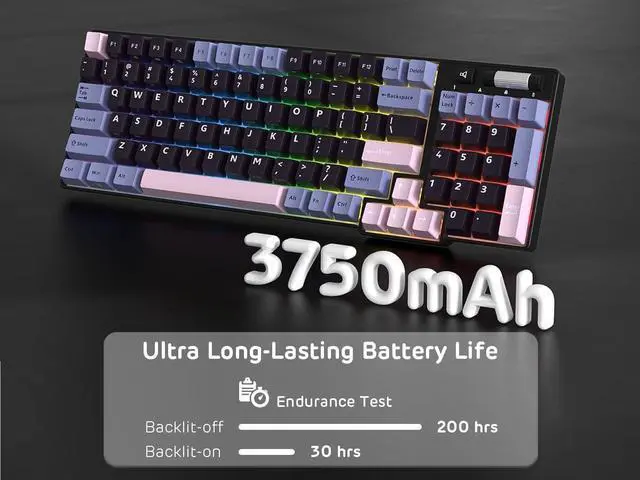 96 Keys, Redefine Full-Size Keyboards - Only 6 keys missing, the mechanical keyboard wireless with a number pad and offset arrow keys is built for productivity and a tactile typing experience.