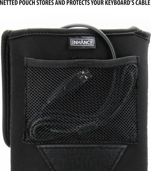 NETTED CABLE POUCH - The ENHANCE Keyboard Case features an innovative netted pouch that is perfect for stowing your keyboard' s USB cable or other small accessories