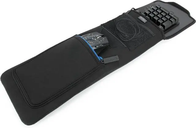 ZIPPER ACCESSORY POUCH - The zipper pouch with rubber puller located on the front of the case can accommodate gaming mice and other larger accessories
