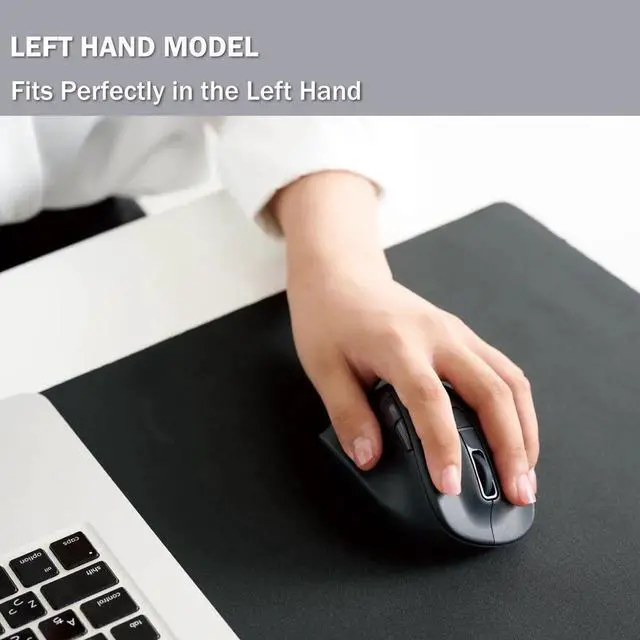 ELECOM Left Hand Bluetooth Wireless Ergonomic Mouse, Silent Click, 2000DPI, 5 Buttons, Optical Sensor, Compatible with PC, Mac, Laptop, EX-G, Msize Black (M-XGM31BBSKBK)