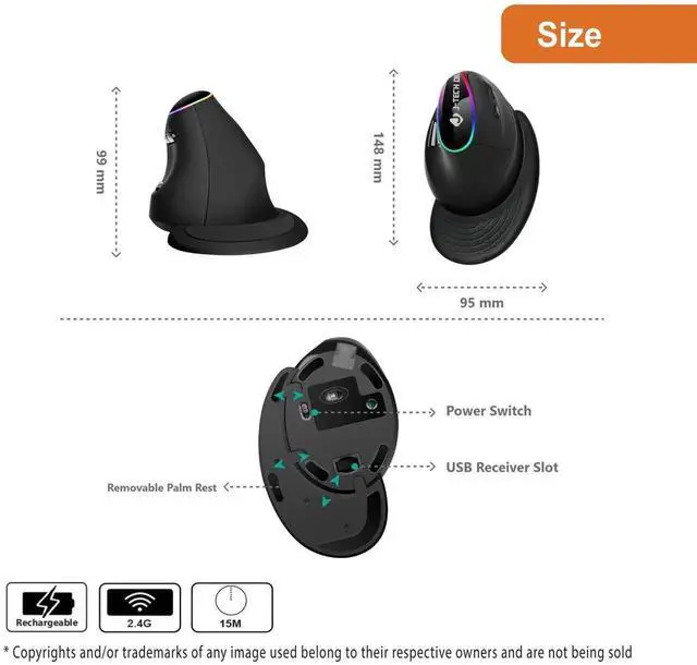 Removable Palm Rest: This ergonomic mouse features a detachable non-skid anti-sweat palm rest that reduces drag, making it easier to maneuver the mouse across the surface of a mousepad, tabletop, desktop, etc.