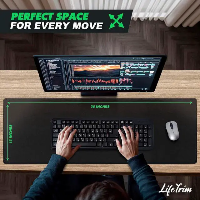 Extra-Large Surface The XXL mouse pad spans 13 x 36 inches, this oversized mouse pad offers ample space for your keyboard, mouse, and accessories, making the extra large mouse pad, extended keyboard mat desk cover, perfect for workstations, gaming setups, and home offices.