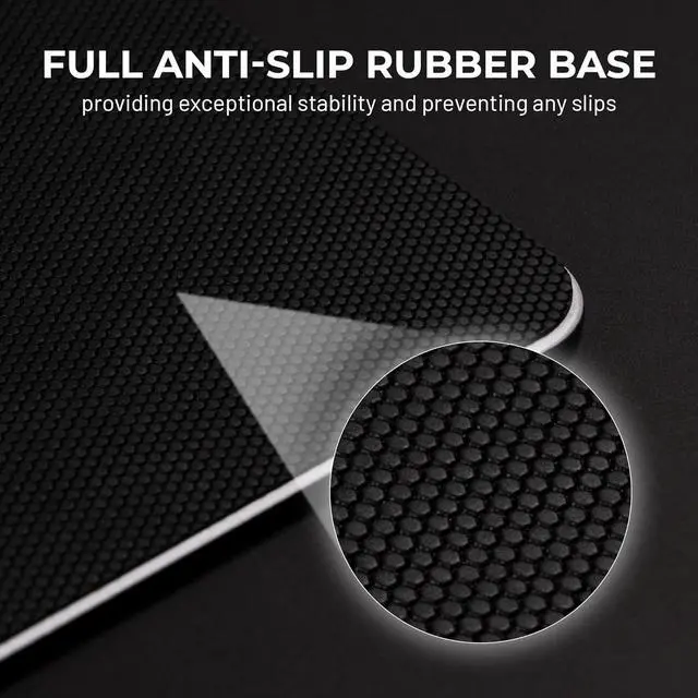 Non-Slip Rubber BottomThe full rubber base is crafted to not only grip tightly to the surface of your desk over long periods of gaming sessions, but also fasten the nice pattern inside the glass mousepadso that your glass mouse pad is beautiful and useful.