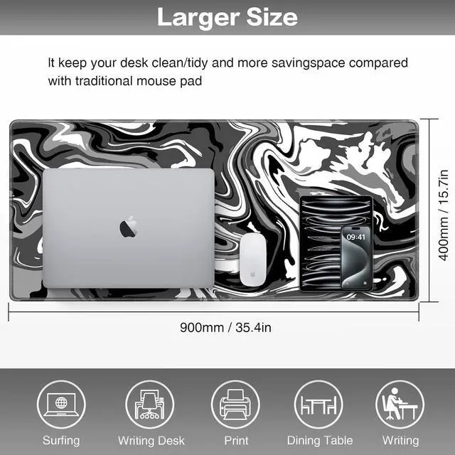 Easy to Clean: This desk matt for desktop comes with a splash proof layer design, which helps prevent damage to your desk from scratches, stains, spills, and high temperatures. The mouse pads is easy to clean, just wipe it with a damp cloth or paper, it won' t fade, can be cleaned and folded, won' t leave wrinkles, and is easy to carry.
