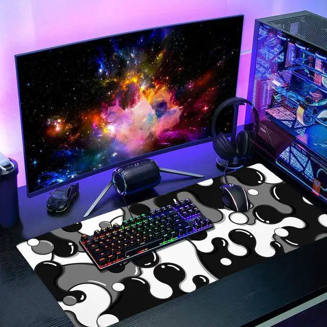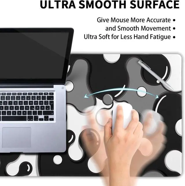 Perfect Size: Large Desk mat' s measure: 35.4 x 15.7 inches. The black white mouse pad will fit your desktop perfectly and provide perfect movement space. The extended XXL keyboard mouse pad is large enough to hold the mouse, game keyboard, and other desktop items while always protecting your desk.