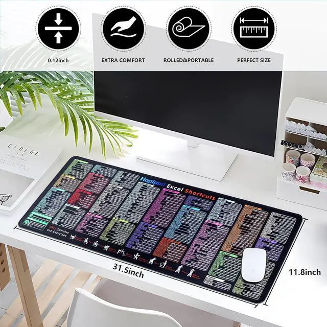 Necessary Office SuppliesOur Excel Mouse Pad for Desk is designed for comfort and productivity. Measuring at 31.5 x 11.8 inches, it provides ample space to accommodate your mouse, keyboard, and other desk essentials. Featuring key Excel shortcuts and simple office stretches, this computer mat helps you work efficiently while staying refreshed throughout the day.