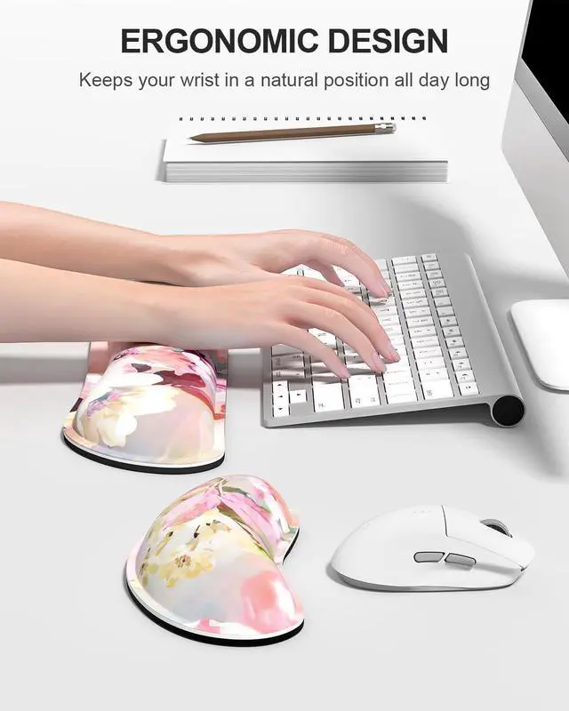 Ergonomic Mouse Pad Set: The ergonomic wrist rest is filled with memory foam to offer superior comfort and effective support, helping to alleviate wrist strain that can lead to repetitive motion disorders. Perfect for people who spend long hours on computer.