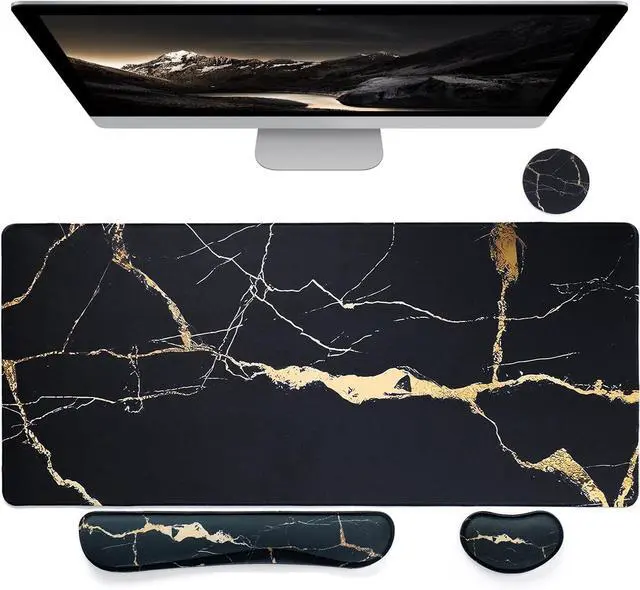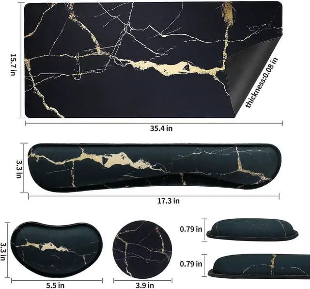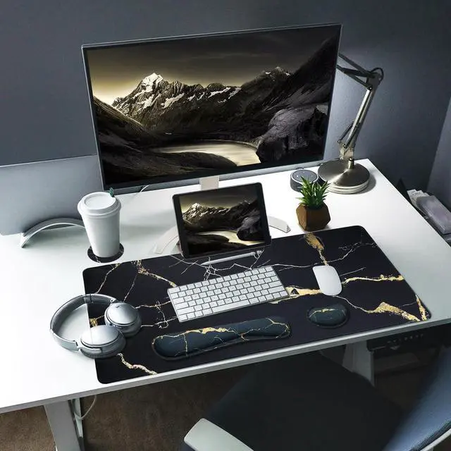 4-in-1 Mouse Pad SetThe large desk pad sets includes desktop pad, keyboard wrist rest, mouse wrist rest, and coaster. Cost-effective price, unique appearance, is the ideal accessory for the desk.