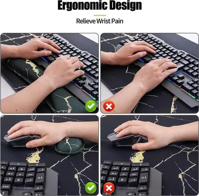 Fatigue Free Office DesignMade of soft memory foam and a smooth breathable fabric, the curved design of both wrist rests fits perfectly around the wrist, providing comfortable support while typing or sliding the mouse, keeping the wrist in a naturally comfortable state.