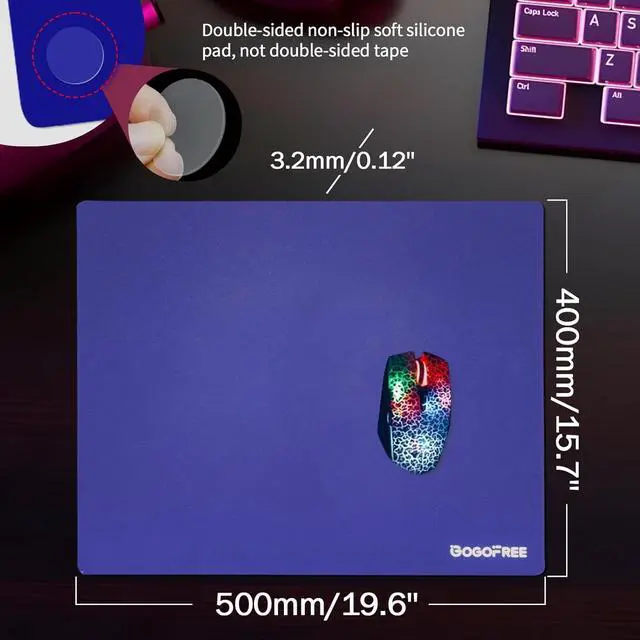 Ultra Smooth Tracking SurfaceThe frosted surface is face up, The smooth back needs to be glued with the bonus accessories: anti-slip stickers. Can' t place the keyboard, white glass mousepad with large dimensions of 15.7 × 19.6 × 0.12 (400mm×500mm× 0.3 mm) delivers zero-friction gliding for mice, Precision speed control technology. Whether you' re using it for gaming, graphic design, or everyday tasks