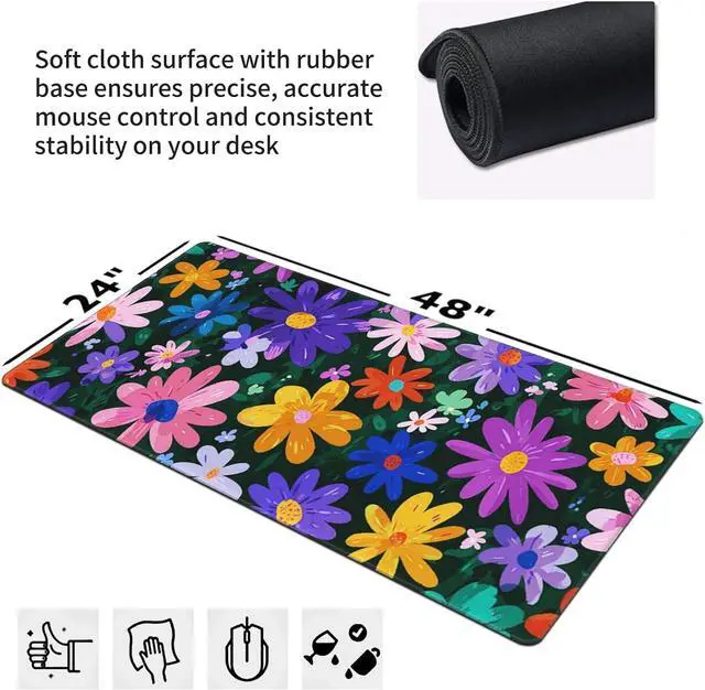 Extended Dimensions: The extra-large desk mat measures 48 x 24 inches (120 x 60 cm), offering ample space for a full-sized keyboard, mouse, and additional accessories, ensuring a clutter-free workspace for productivity or gaming