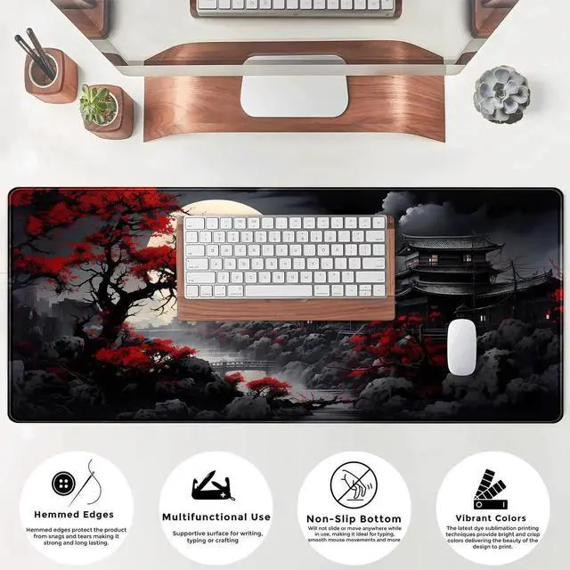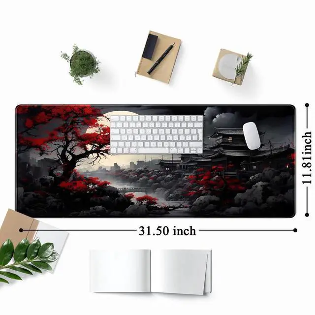 Extended Size: 31.5 x 11.9 inches. The desk pad is large enough to have a mouse, gaming keyboard, and other desk items while maintaining protecting your desk all the time.