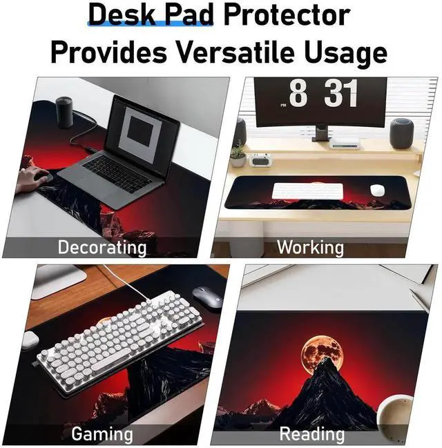 SizeOur oversized mouse pad is designed for comfort and efficiency. Measuring 31.5 x 11.8 inches, it provides ample space to hold your mouse, keyboard, and other desktop essentials.