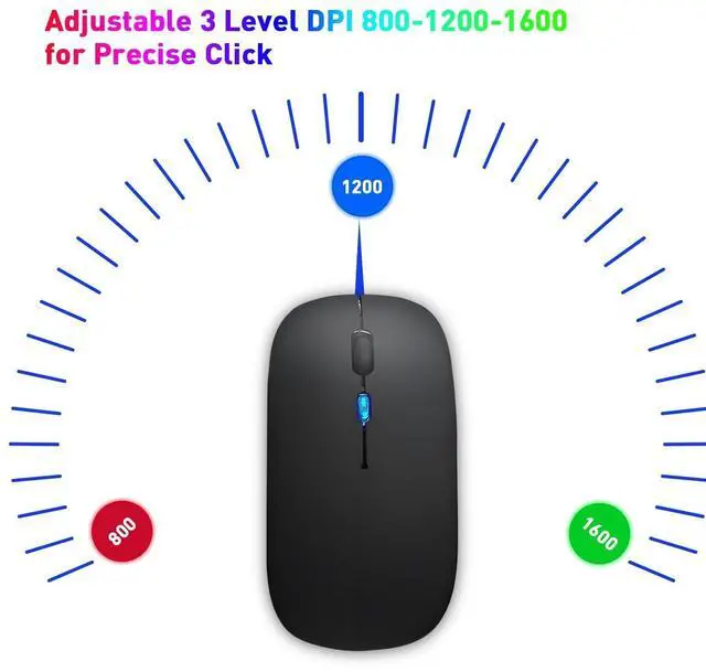 Adjustable DPIWireless mouse has 3 levels of adjustable DPI 800-1200-1600, you can change it for more precise click and control.