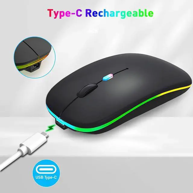 Type-C Rechargeable and Power Saving ModeBluetooth mouse has built in rechargeable battery and latest Type-C charging port. It also has auto-sleeping mode to save power. 2 hours full charge can last for 6 months.