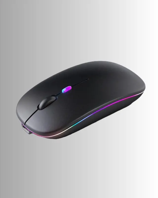 Wireless Bluetooth Mouse 2.4G Rechargable Laptop Mouse Tablet Mouse with LED Use Portable and 2.4G Dual Mode Silent Slim Ergonomic shape Computer Mouse for Laptop/Tablet/PC Red light Optical Technology Silent button 2.4G Transmission distance up to 8-10 meters Third gear DPI Adjustable 800/1200/1600 Automatic Sleep Technology 6 months Battery Life