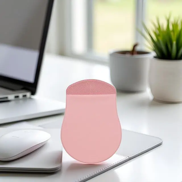 Introducing the Pink Universal Stick-On Mouse Pouch Mouse Holder, a convenient and reusable solution for storing your mouse when not in use. This innovative product features an adhesive backing that allows you to securely attach it to your laptop or desk, keeping your workspace tidy and organized. The pouch is designed to fit most standard-sized mice, providing a snug and protective storage space. Made from durable materials, this mouse holder is built to withstand daily use and can be easily removed and repositioned as needed. Whether you're a busy office worker or a student on the go, this mouse holder offers a practical and stylish way to keep your mouse within reach while freeing up valuable desk space. Its compact size and sleek pink color add a touch of style to your setup.