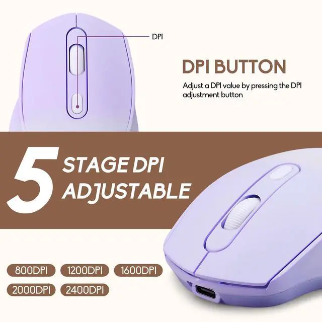 Wireless Gradient Color Bluetooth Mouse,Dual Mode Rechargeable Silent Slim Laptop Mouse,Portable(BT5.2+USB Receiver) Dual Mode Computer Mice,for Laptop,Desktop Computer,ipad Tablet,Phone,TV (Gradient Purple)