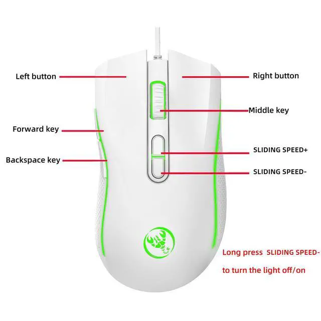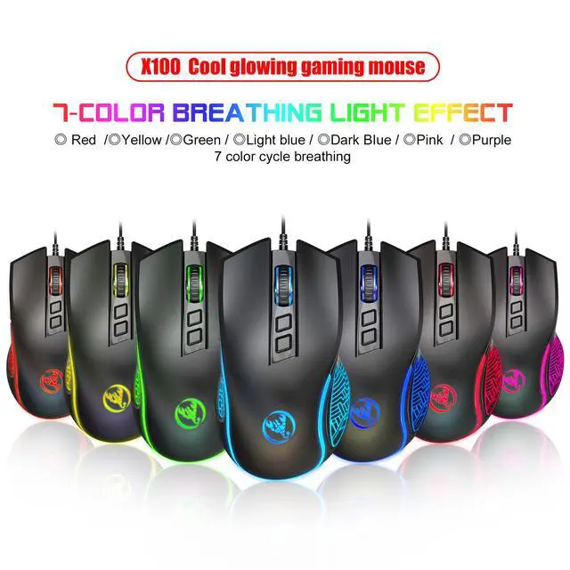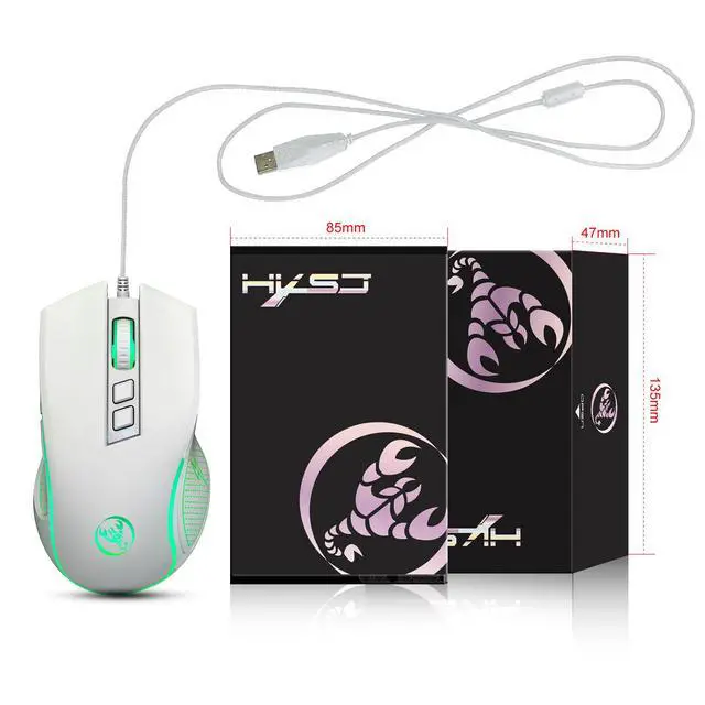 A869 HXSJ Colorful Illuminating Gaming Mouse - Competitive Gaming Wired Mouse with DPI adjustable in 4 levels up to 3200 DPI X100B White New Model Gaming Mouse