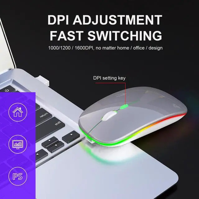 • A charging cable is included in the package. When the cursor movement delay occurs, please insert the charging cable into the front end interface of the mouse to charge. Please try not to use it while charging