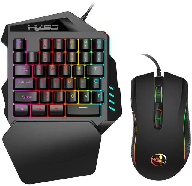 35-key membrane colorful one-handed gaming keyboard, compact and portable, perfect for mobile gaming. Features PUBG set. V100+A869 keyboard and mouse