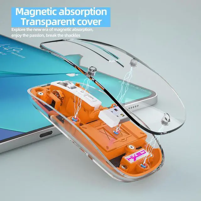 Three-mode transparent design, futuristic technology style. 2.4G wireless mouse with Bluetooth 5.1, silent magnetic attachment, rechargeable, wireless mouse with battery level display. white