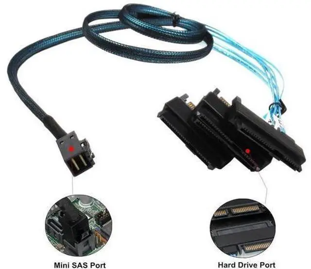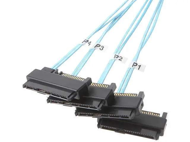 SFF-8643 Internal Mini SAS HD to (4) 29pin SFF-8482 connectors with SAS 15pin Power Port 12GB/S Cable 1M 3.3 feet