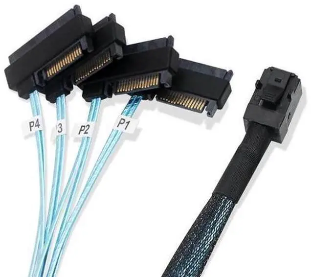 HD MINI SAS SFF-8643 to 4SATA For enterprise storage solutions, using HD MINI SAS SFF-8643to 4 SATA 7-pin adapter is a common configuration method. This type of adapter allows systems based on SAS controllers to connect to standard SATA hard disk drives or solid-state drives (SSDs), enabling more flexible storage configurations and expansion capabilities. HD SAS (High Density Serial Attached SCSI) is a high-density serial attached SCSI interface primarily used for connecting storage devices such as hard disk drives (HDDs), solid-state drives (SSDs), and tape drives. The HD SAS interface supports various data transfer speeds, including 6Gbps, 12Gbps, and even 22Gbps, depending on the implemented SAS standard (such as SAS-2, SAS-3).